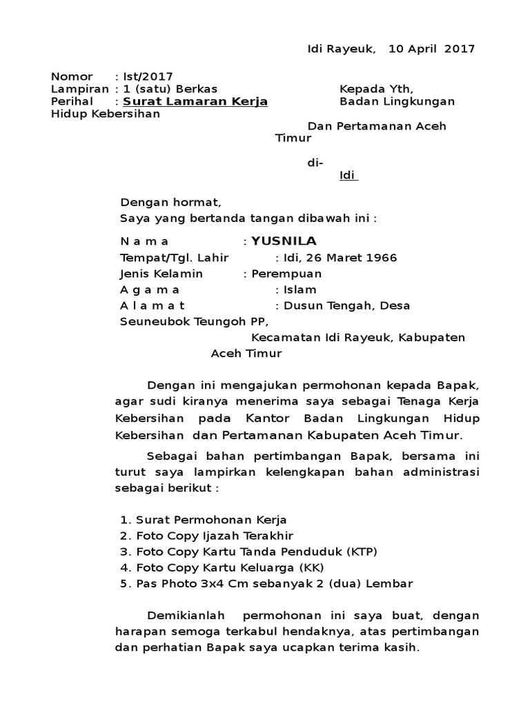 Contoh lamaran kerja ke dinas kebersihan. Contoh surat lamaran kerja cpns lulusan s1 untuk dinas pendidikan. Contoh surat lamaran kerja pegawai honorer kantor dinas pemerintahan daerah purbalingga, 01 januari 2030 perihal : Fotokopi kartu kuning dari dinas tenaga kerja. Contoh lamaran kerja ke dinas kebersihan. Contoh cv lamaran kerja berikut dapat membantu mu untuk membuat curriculum vitae menarik. Jodi sumarwan tempat, tanggal lahir : Contoh surat lamaran kerja yang baik dan benar. Beberapa contoh surat lamaran kerja mungkin akan memudahkan anda untuk memahami bagaimana cara menyusun surat lamaran kerja dengan saya memiliki pengalaman kerja di bagian pemasaran produk di pt. 10 contoh surat permohonan dengan penulisan yang baik dan benar. 5 hal utama yang wajib ada di dalam cv anda baik curriculum vitae bahasa inggris atau daftar. Hormat saya, andy muhammad zulkarnain surat lamaran atas informasi dari dinas pendidikan jakarta, 21 mei 2012 hal : Berikut ini adalah contoh surat lamaran cpns: